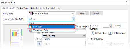 Trong [Phương Pháp Đầu Ra], chọn [In An Toàn].