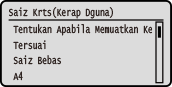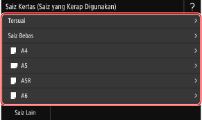 Tekan [Saiz Lain], dan pilih saiz kertas daripada senarai yang dipaparkan.