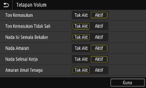 Tetapkan sama ada untuk mengeluarkan bunyi apabila anda menekan kekunci dan butang pada panel operasi.