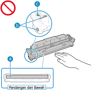 Hati-hati jangan sampai menyentuh permukaan dram di bahagian bawah kartrij toner.