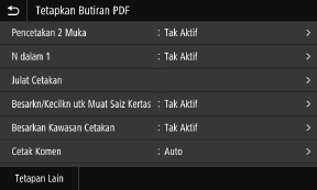 Untuk memaparkan skrin, tekan [Tetapkan Butiran PDF] pada skrin tetapan Cetakan Media Memori.