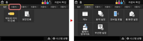 조작 패널은 터치 스크린을 사용합니다. 화면에 표시된 버튼과 항목을 손가락으로 직접 눌러 작동합니다.