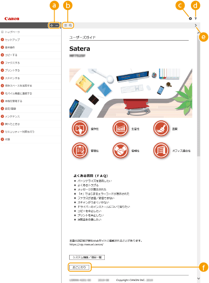 ユーザーズガイドはいくつかの画面に分かれていて、それぞれ内容が異なります。