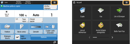 (Accueil). L’écran <Accueil> affiche une liste de boutons de fonction et sert d’accès à diverses fonctions. Éléments affichés dans l’écran <Accueil>