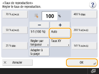 ![]() | Vous pouvez automatiquement agrandir ou réduire les documents au format du papier sélectionné pour la copie. Agrandir ou réduire les copies au format du papier |