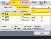 1 | Appuyez sur <Envoi> ou <Réception> <Journal des tâches>. |