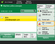 Ce mode peut uniquement être utilisé si une adresse e-mail ou un serveur de fichiers est spécifié comme destination.