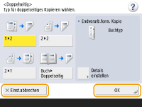 Drücken Sie <OK>, um die Einstellungen anzuwenden, oder drücken Sie <Einst.abbrechen>, um die Änderungen zu verwerfen und die vorherigen Einstellungen wiederherzustellen.