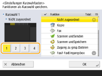 Sie können eine Schnelltaste für die Funktionen im Bildschirm <Startseite> anlegen. Verwenden Sie diese Taste, um auf eine andere Funktion zuzugreifen, ohne zum Bildschirm <Startseite> zurückzukehren. Zum Anlegen einer Schnelltaste melden Sie sich mit Administratorrechten an.