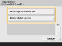 Drücken Sie <Zugänglichkeit>, und wählen Sie die Einstellung, die Sie konfigurieren möchten.