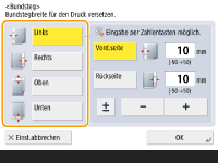 Drücken Sie <Vorderseite> oder <Rückseite>, und geben Sie die jeweilige Randbreite ein.