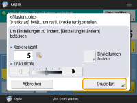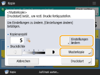 Drücken Sie <Einstellungen ändern>, um die Einstellungen zu ändern. <Musterkopie> wird angezeigt, nachdem die Einstellungen geändert wurden. Drucken Sie eine weitere Testkopie aus.