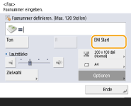 <Auto EM> ![]() | Dediziert für Fax-Empfang Das Gerät empfängt Faxe automatisch. Selbst wenn jemand Sie anruft, können Sie nicht mit dem Anrufer sprechen. |