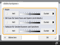 Drücken Sie  (Einstell./Speich.)  <Justage/Wartung> <Bildqualität justieren> <Dichte korrigieren>.