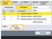Wenn  (Einstell./Speich.)  <Einstellungen Verwaltung> <Geräteverwaltung> <Zugang zu anderen Anwenderaufträgen beschränken> auf <Ein> gesetzt ist, werden andere Aufträge als die der angemeldeten Benutzer mit "***" gekennzeichnet und nicht ausgeführt. Wenn Sie sich mit Administratorrechten anmelden, werden die Aufträge aller Benutzer angezeigt.