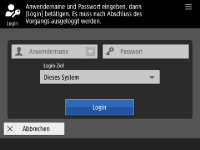 | | Benutzer melden sich mit dieser Methode an, indem Sie ihren Benutzernamen und das Passwort mithilfe der im Bedienfeld eingeblendeten Tastatur eingeben. Diese Methode ist unabhängig von dem verwendeten Authentifizierungsgerät verfügbar. |