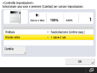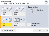 È possibile utilizzare solo carta A4 per <Libro 2 lati>.Quando si utilizza <Libro 2 lati>, posizionare gli originali sul vetro di lettura. |