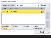 Non è possibile modificare <Metodo ricezione> dopo avere registrato <Impostazioni inoltro>. Per utilizzare le impostazioni di inoltro con <Metodo ricezione> modificato, registrare nuovamente le impostazioni di inoltro. |