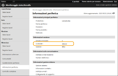![]() | Periodicamente viene rilasciato del firmware nuovo per aggiungere funzioni nuove o per risolvere problematiche di funzioni esistenti. Se è disponibile del firmware nuovo, seguire la procedura sottostante per aggiornarlo sulla macchina. Sono necessari i privilegi di amministratore per aggiornare il firmware. |
