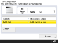 Solo puede utilizarse papel A4 para <Libro Doble cara>.Coloque los originales en el cristal de copia utilizando <Libro Doble cara>. |