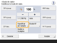 ![]() | Puede ampliar o reducir especificando la escala de copia (%). Puede especificar la escala vertical y horizontal por separado. Ampliar o reducir copias especificando la escala de copia | |