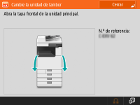 El mensaje de sustitución de la unidad de tambor que aparece en la parte inferior de la pantalla varía en función de su contrato. Pulse <Cerrar> cuando haya acabado de sustituir la unidad de tambor. |