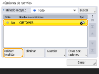 No puede cambiar el <Método de recepción> después de registrar las <Opciones de reenvío>. Para utilizar opciones de reenvío tras cambiar el <Método de recepción>, tiene que volver a registrar las opciones de reenvío. |
