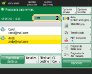 Pantalla de funciones básicas del escánerEspecificar destinos de la libreta de direcciones