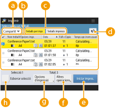 Per cancel·lar la impressió, seleccioneu el treball que voleu cancel·lar a <Impreses> i seleccioneu <Cancel·lar impressió>. També podeu prémer