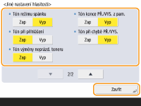 Tón se ozve, když stroj přechází do režimu spánku, nebo také když se stroj vypne, pokud nastavíte <Nast. rychlého spuštění pro hlavní napájení> na <Zap>. (V určitých situacích se může stát, že se stroj rychle nespustí a tón nezazní.)