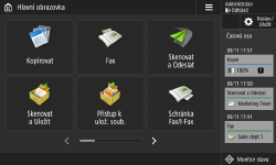 (Domů). Obrazovka <Hlavní obrazovka> zobrazuje seznam tlačítek funkcí a funguje jako vstup do různých funkcí. Položky zobrazené na obrazovce <Hlavní obrazovka>
