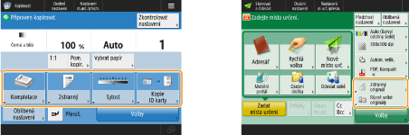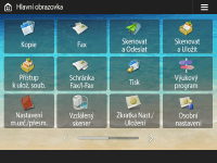 Tlačítka nastavení, která se zobrazují na obrazovce základních funkcí (pro kopírování, faxování a skenování), můžete změnit. Můžete také zobrazit jinou obrazovku základní ch funkcí, která bude přizpůsobená pro každého přihlášeného uživatele.