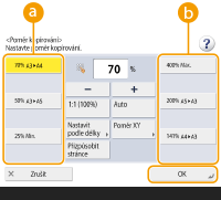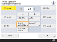 Zvětšení nebo zmenšení lze provést zadáním poměru kopírování (%). Vertikální a horizontální poměry lze zadávat zvlášť.
