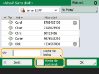 se zobrazí faxová a skupinová místa určení (v uvedeném pořadí).