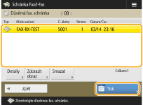 Tato funkce slouží k ukládání přijatých dokumentů splňujících určité podmínky do zadaného úložiště (Důvěrná faxová schránka). Důvěrná faxová schránka obsahuje mnoho schránek, z nichž každou lze chránit s pomocí hesla. Po zadání podmínky, kdy např. zadáte ukládání všech dokumentů ze Společnosti A do Schránky č. 10, budete smět kontrolovat pouze dokumenty, které potřebujete. S pomocí této funkce také můžete zabránit neoprávněným osobám, aby neúmyslně nahlížely do důvěrných dokumentů, a to nastavením hesla. Když indikátor Zpracování/data na ovládacím panelu svítí stálým zeleným světlem, zkontrolujte/vytiskněte uložené dokumenty níže uvedeným postupem.