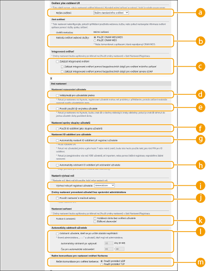 Chcete-li deaktivovat funkci integrovaného ověření přístupových práv pouze pro přihlášené uživatele zaregistrované na serveru LDAP, zaškrtněte políčko pro [Zakázat integrované ověření pomocí bezpečnostních údajů pro ověření serveru LDAP].