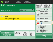 Šifrovaný soubor PDF je vyvolán a odeslán z Oblíbená nastavení