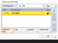 Når <Hent adressebogen> er indstillet til <Til>, kan videresendelsesmodtagere også vælges fra en fjernadressebog.