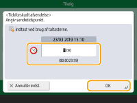 Du kan scanne originaler på forhånd og sende de scannede originaler på et angivet tidspunkt.