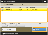 Denne funktion er til at gemme de modtagne dokumenter, der passer med specifikke betingelser, på den angivne lagringsplacering (Fortrolig faxboks). Fortrolig faxboks indeholder flere bokse, og hver boks kan beskyttes med password. Ved at angive en betingelse, som f.eks. lagring af alle dokumenter fra Firma A i boks nummer 10, har du kun tilladelse til at tjekke de dokumenter, du har brug for. Med denne funktion kan du også, når du angivet et password, forhindre, at uautoriserede personer fejlagtigt ser fortrolige dokumenter. Når indikatoren Behandler/data på betjeningspanelet lyser fast grønt, skal du følge følgende procedurer for at tjekke/printe gemte dokumenter.