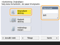 Justering af farven <Originalformat>, er anderledes end det formatet på bogen, skal du trykke på <Skift> for at vælge formatet. Det er kun de originalformater, der vises på touchpanelet, der kan scannes.
