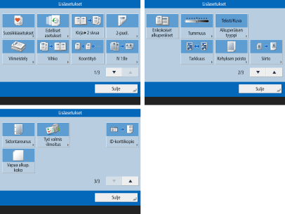 Lisäasetukset-pikapainikkeet
