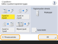 sijaitsee alhaalla oikealla, ja avaa asetusikkuna. Kun asetus on tehty, asetuksen tila näkyy painikkeen yläosassa ja alaosan väri vaihtuu.