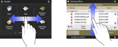 Toimi samalla tavalla kuin älypuhelimella (pyyhkäise / vedä ja pudota)Joissakin näytöissä voit vaihtaa sivua tai selata pyyhkäisemällä sormellasi ylös/alas tai vasemmalle/oikealle, kuten älypuhelimella.
