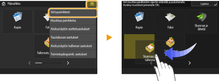 Pyyhkäisytoimintoja ja vedä ja pudota -toimintoja ei voi käyttää, kun <Käännä näytön värit päinvastaisiksi> -asetus on <Kyllä>. <Käännä näytön värit päinvastaisiksi>