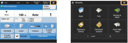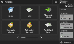 (Koti). <Päävalikko>-näytössä näytetään toimintopainikeluettelo, josta voit valita eri toimintoja. <Päävalikko>-näytössä näytetyt kohteet