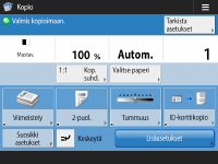 , joka näytetään <Päävalikko>-näytössä ja perustoimintojen näytössä, niin voit mukauttaa näyttöä. Voit esimerkiksi järjestää painikkeet uudelleen tai luoda pikavalintapainikkeen. Kosketusnäytön muokkaaminen