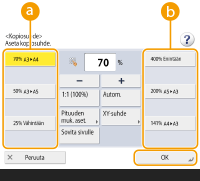 Voit suurentaa tai pienentää määrittämällä kopiosuhteen (%). Voit määrittää pysty- ja vaakasuhteet erikseen.