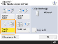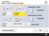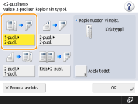Kun teet 2-puolisia kopioita, joidenkin asetusten toiminnot kuten paperikoko ja tyyppi, ovat rajoitettuja. Lisätietoja on kohdassa Laitemääritykset.
