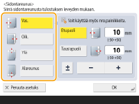 Voit tehdä sidontareunukset nidontaa tai rei'itystä varten. Voit asettaa sidontareunukset erikseen sivujen etu- ja taustapuolelle.